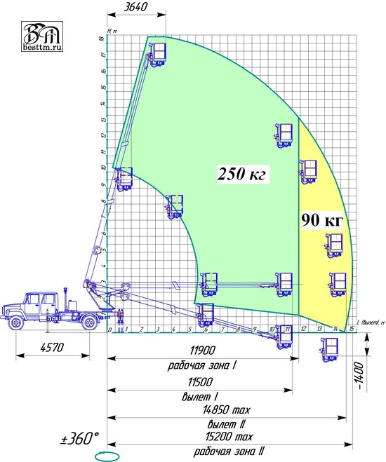 - Ограничение зоны обслуживания осуществляется системой контроля грузового момента Fabercom, работающего на отключение операций увеличения грузового момента.