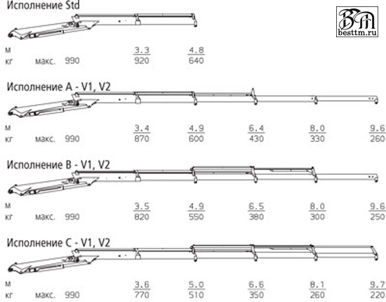 Грузоподъемность на вылете 9,6 м с мех. вставками |